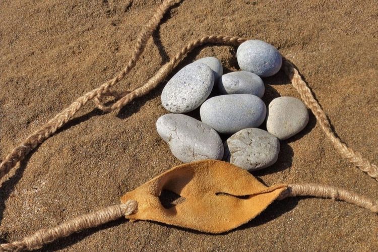 Made from a piece leather and tied with rope or leather thongs, the sling was another useful weapon of defense. It was also used by the shepherd to throw stones at lagging or straying sheep to keep them on the right path.