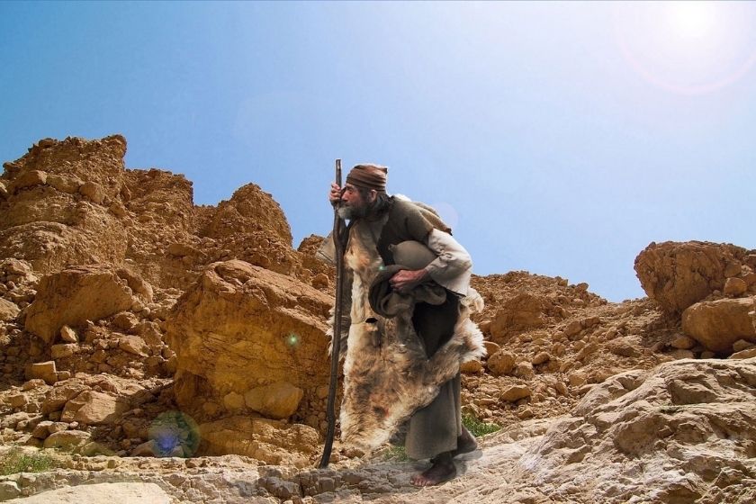 He also carried a small skin pouch for drinking water and a ram’s horn filled with olive oil for medicinal purposes.