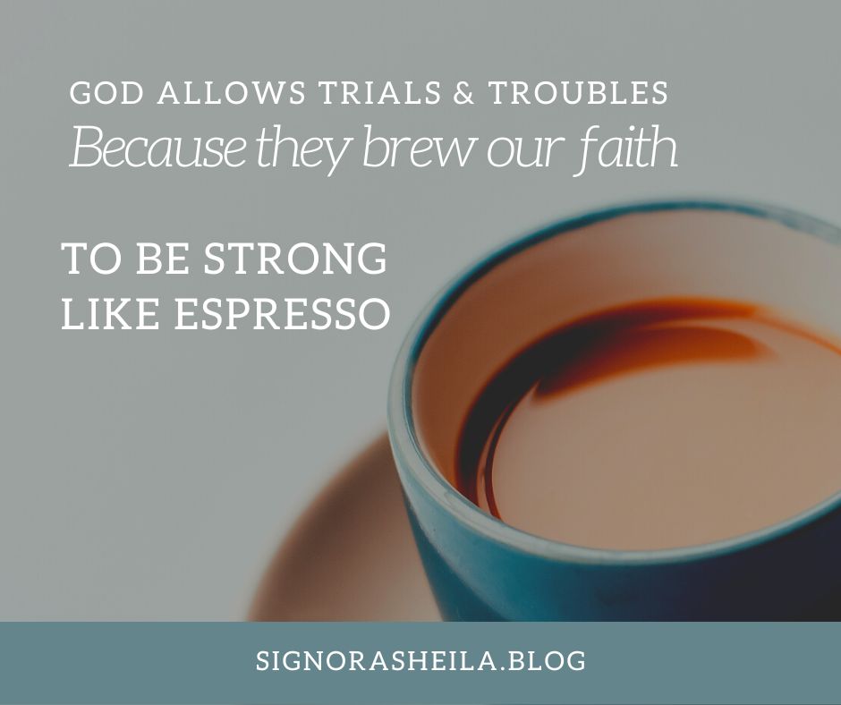 God allows troubles and trials in our lives. Because they brew our faith to make it strong, energizing, and refreshing – just like espresso!