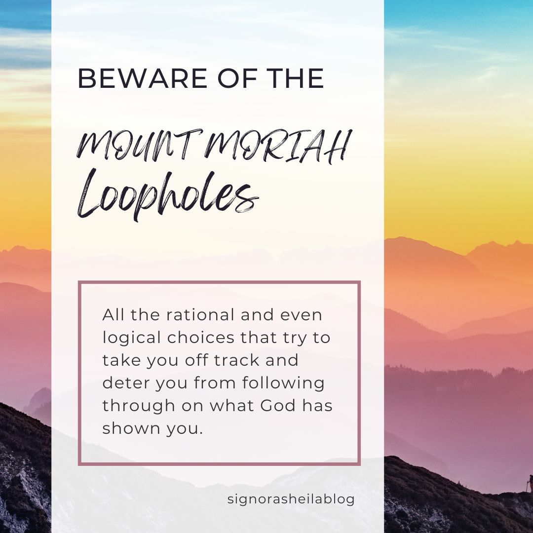 How about when we find ourselves on Mount Moriah? For it is inevitable if we strive to follow the Lord. He wants to bring us to a greater level of trust and obedience. So he takes us through the deeper lessons of Moriah. And that’s when we need to guard against loopholes that present themselves.